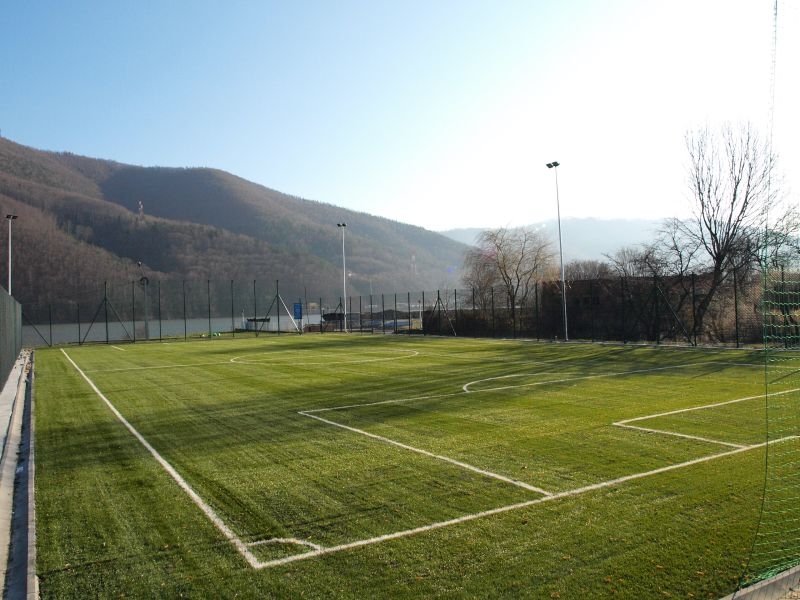 Zadanie obejmowało budowę boiska z trawy syntetycznej wraz z ogrodzeniem.