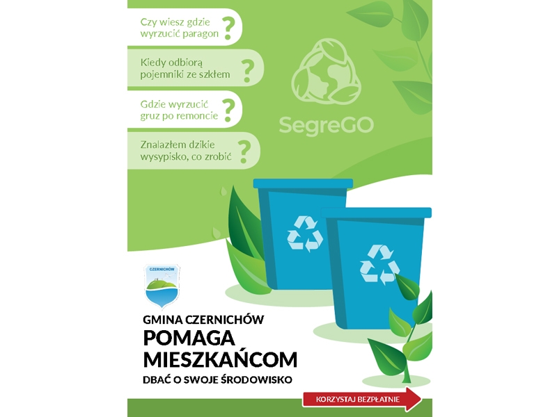 Od kwietnia 2021 roku Urząd Gminy w Czernichowie uruchomił system SEGREGO, który umożliwi mieszkańcom w wygodny sposób wyszukać swój harmonogram odbioru odpadów, a nawet zamówić przypomnienia o nadchodzących terminach wywozu śmieci czy płatnościach.