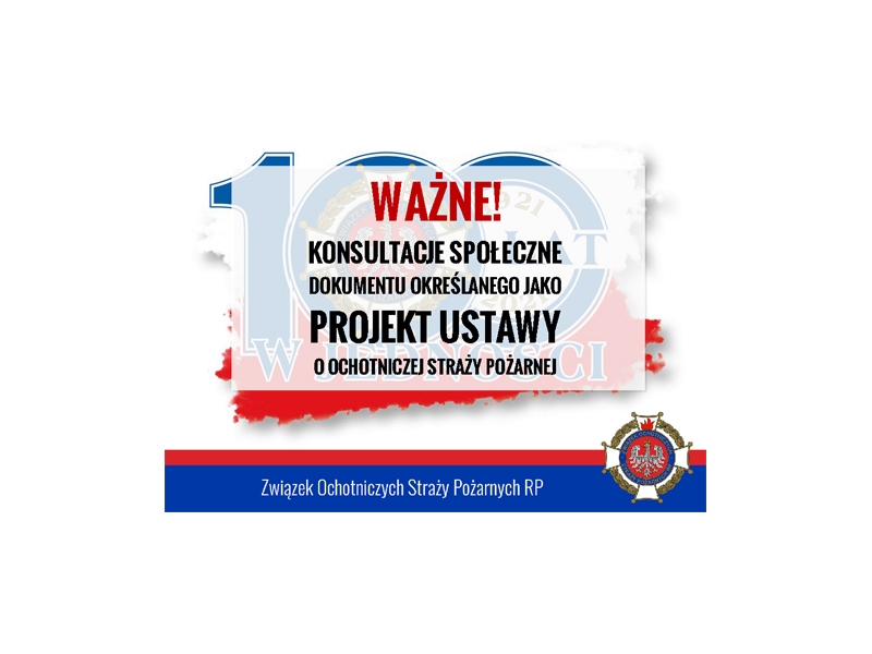 Związek OSP RP realizując cele statutowe w zakresie reprezentowania interesów OSP organizuje konsultacje społeczne przedstawionego przez Komendę Główną PSP dokumentu określanego jako projekt ustawy o ochotniczej straży pożarnej, mimo że z formalnego punktu widzenia konsultowany dokument jest co najwyżej propozycją przyszłego projektu ustawy. Konsultacje odbywać się będą w trybie on-line. Szczegóły dostępne na stronie http://www.zosprp.pl/?q=content/konsultacje-spoleczne-dokumentu-okreslanego-jako-projekt-ustawy-o-ochotniczej-strazy-pozarne