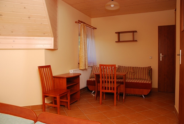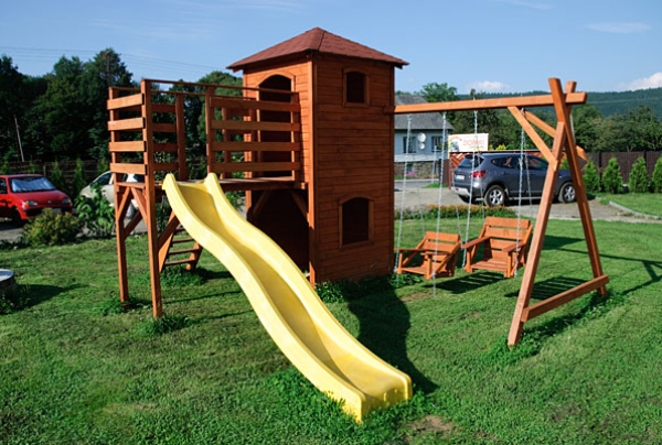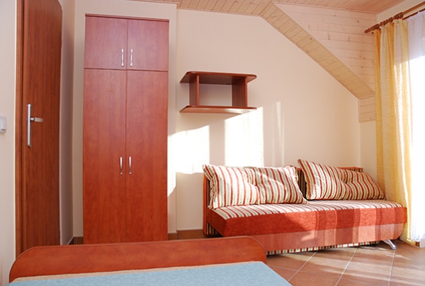 Pokoje w pełnym standardzie z łazienką, balkonem, TV, Internet, pościel. Do dyspozycji gości mamy duży ogród, pac zabaw, trampolinę, leżaki, altanę z gilem oraz bezpłatny parking