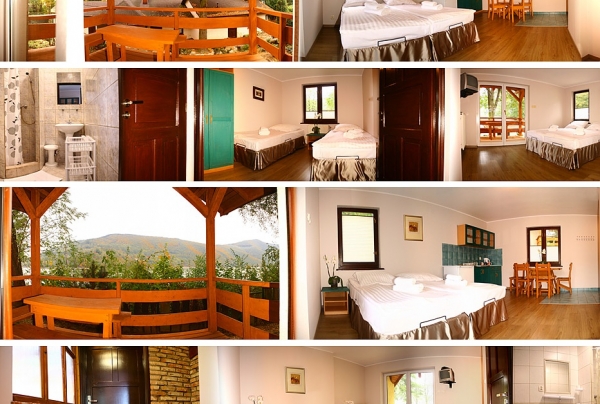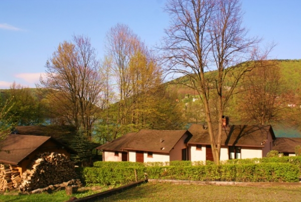 16 całorocznych, odnowionych w 2015r., ogrzewanych domków wśród pięknego drzewostanu to świetna propozycja na spędzenie czasu na łonie natury, sielsko i w spokoju. Ośrodek może pomieścić w sumie 50 osób. Wszystkie domki wyposażone są w łazienkę oraz aneks kuchenny. Domki polecamy szczególnie jako zaplecze noclegowe imprez okolicznościowych, na krótsze i dłuższe pobyty dla grup mniejszych i większych, wędkarzy i osób szukających bazy wypadowej na wycieczki górskie.